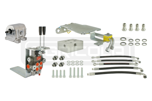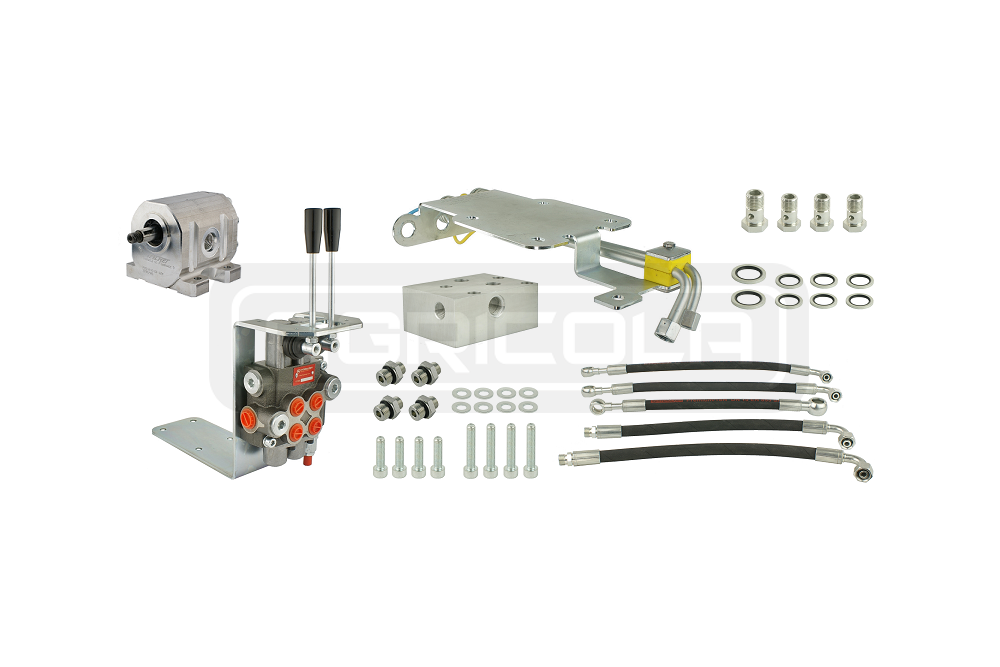 Zestaw do przeróbki i rozbudowy podstawowej hydrauliki w ciągnikach ursus C-330 w zestawie adapter, pompa aluminiowa, rozdzielacz 2 sekcyjny, wsporniki, gniazda, węże i złącza.