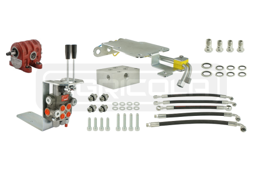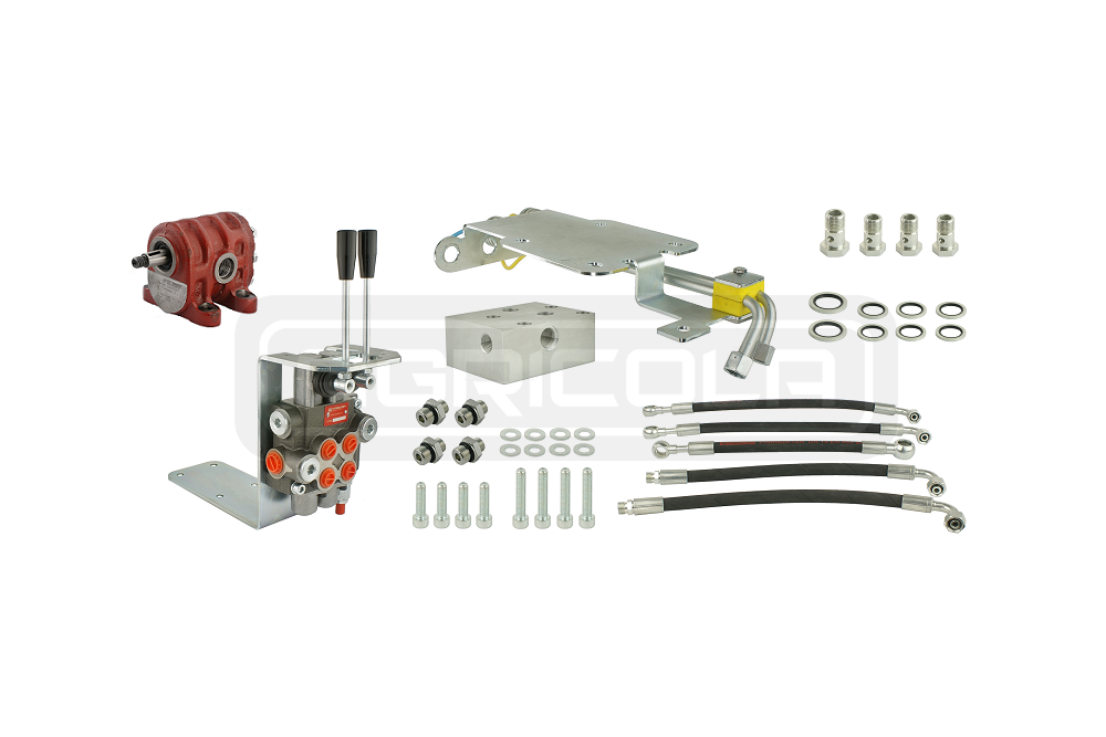 Zestaw do przeróbki i rozbudowy podstawowej hydrauliki w ciągnikach ursus C-330 w zestawie adapter, pompa żeliwna, rozdzielacz 2 sekcyjny z sekcją pływającą, wsporniki, gniazda, węże i złącza.