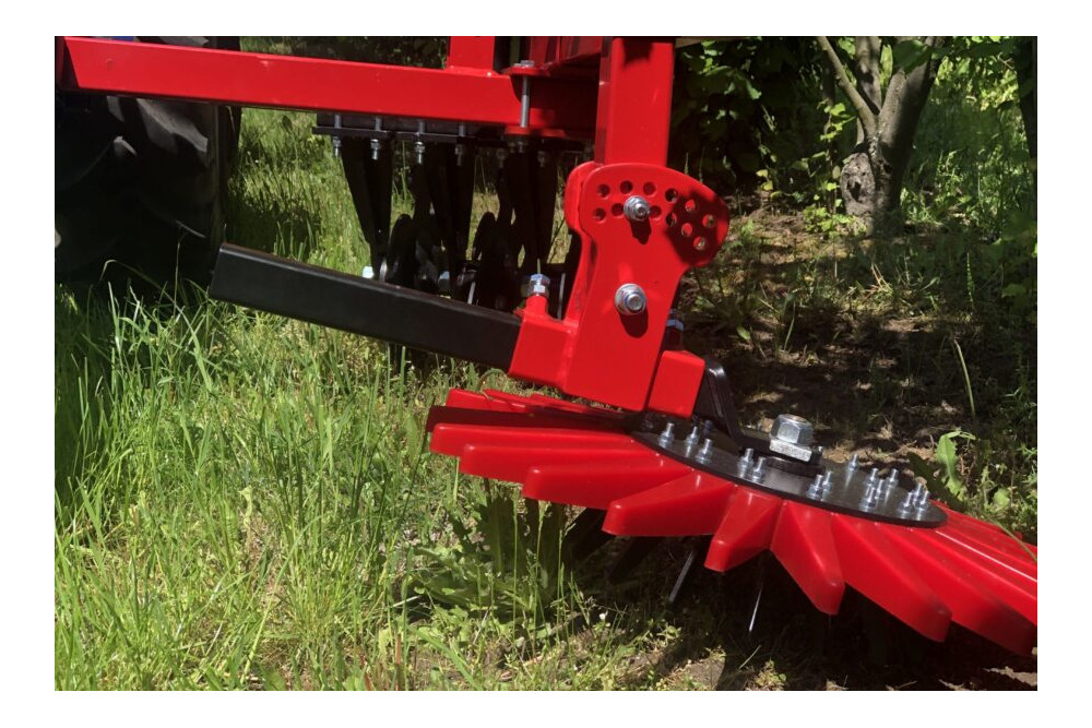 Pielnik boczny – Gwiazda pieląca: Eko-pielnik międzyrzędowy przeznaczony jest do pracy w sadach i młodych plantacjach oraz w uprawach, gdzie wymagane jest pielenie boczne. Zastosowanie pielącej gwiazdy idealnie nadaje się do mechanicznego pielenia między rzędami, dzięki czemu gleba jest spulchniana przed odrzuceniem chwastu, co zwiększa skuteczność pielenia.