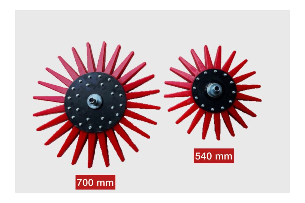 Oferujemy Pielnik boczny z gwiazdą pielącą w dwóch rozmiarach. Średnica gwiazdy pielącej wynosi 700 mm, 540 mm i dostępna jest w 3 stopniach twardości, co zapewnia szersze zastosowanie w zależności od rodzaju gleby.
