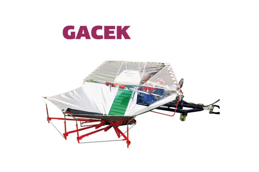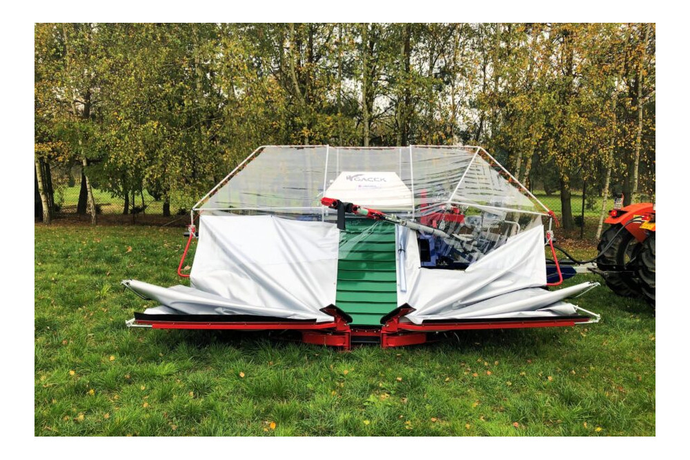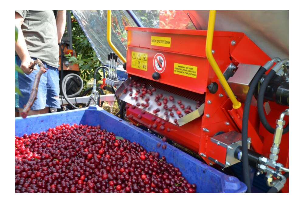 - zbiór wiśni GACEK, nowatorskim rozwiązaniem jest zastosowanie odwróconego „parasola” rozkładanego hydraulicznie pod drzewem przed otrząśnięciem owoców.