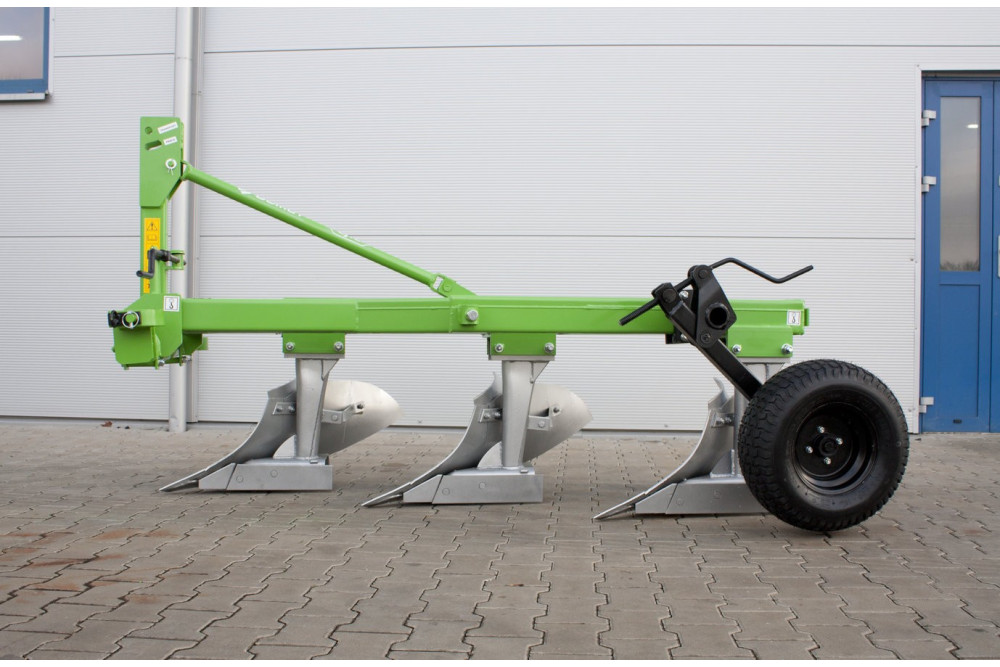 Pług wyposażony jest w śrubowy mechanizm regulacji pierwszej skiby, a głębokość pracy może być regulowana kołem podporowym stalowym lub ogumionym.